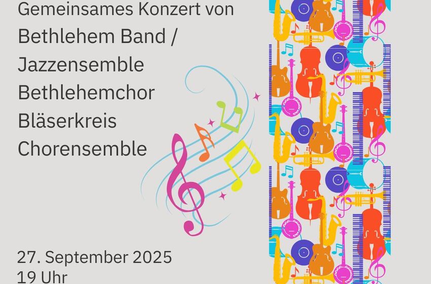 Am Samstag 27. September um 19 Uhr findet im Gemeindesaal der Bethlehemkirche das Konzert der Bethlehem Chöre und Musikgruppen statt. Beteiligt sind: Solist*innen, Bethlehemchor, Chorensemble, ...