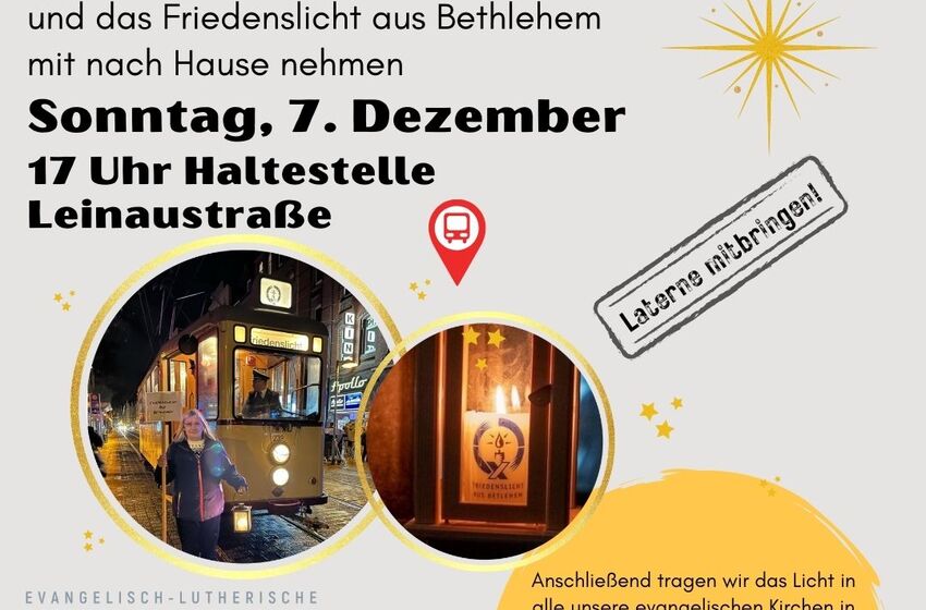 Auch in diesem Jahr werden wir das Friedenslicht aus Bethlehem in Empfang nehmen. Am Sonntag, den 7. Dezember (2. Advent) warten wir ab 17 Uhr mit Lebkuchen, Punsch und guter Laune an der Linie ...