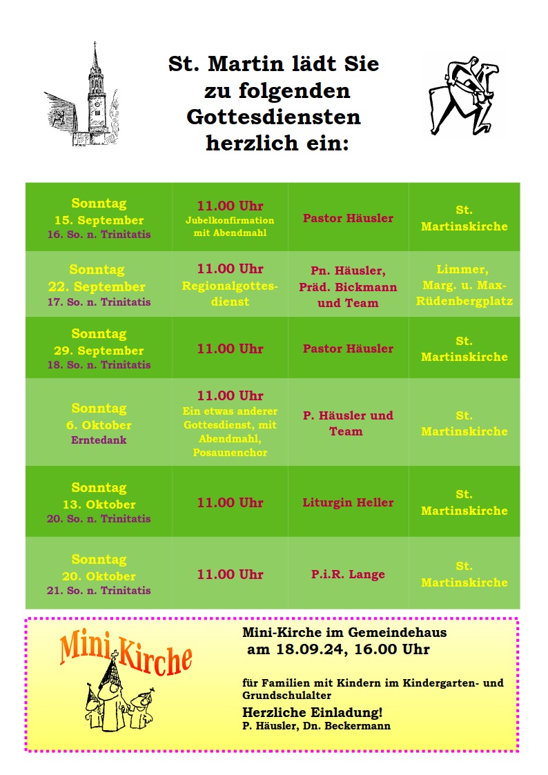 Gottesdienstplan St. Martin September Oktober 2024