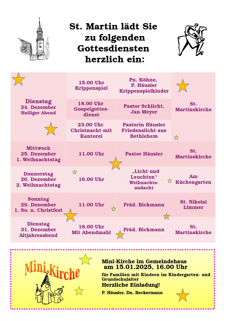Gottesdienstplan St. Martin Weihnachten 2024 (Stand: 23.12.2024)