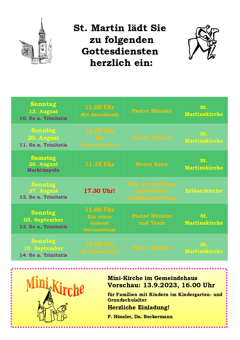 Gottesdienstplan St. Martin Dezember 2022 Januar 2023