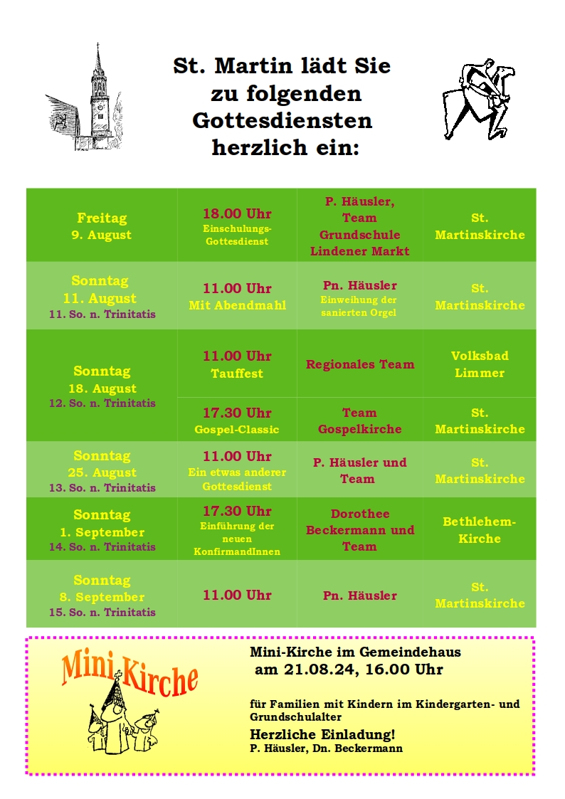 Gottesdienstplan St. Martin Dezember 2022 Januar 2023