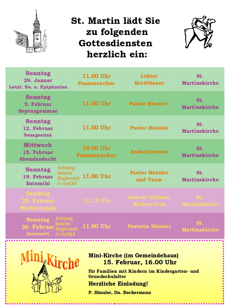 Gottesdienstplan St. Martin Februar 2024