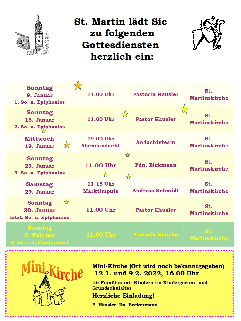 Gottesdienstplan St. Martin Dezember 2022 Januar 2023