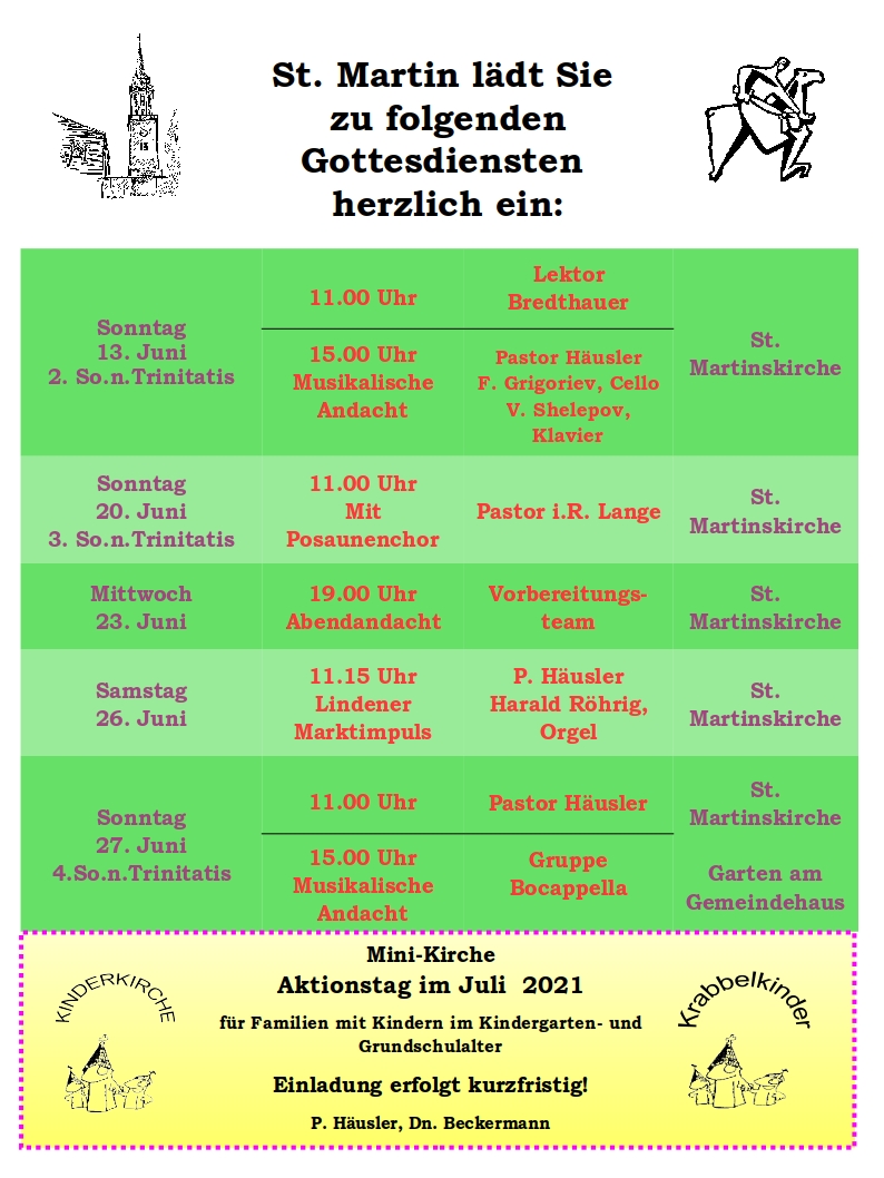 Gottesdienstplan St. Martin Dezember 2022 Januar 2023