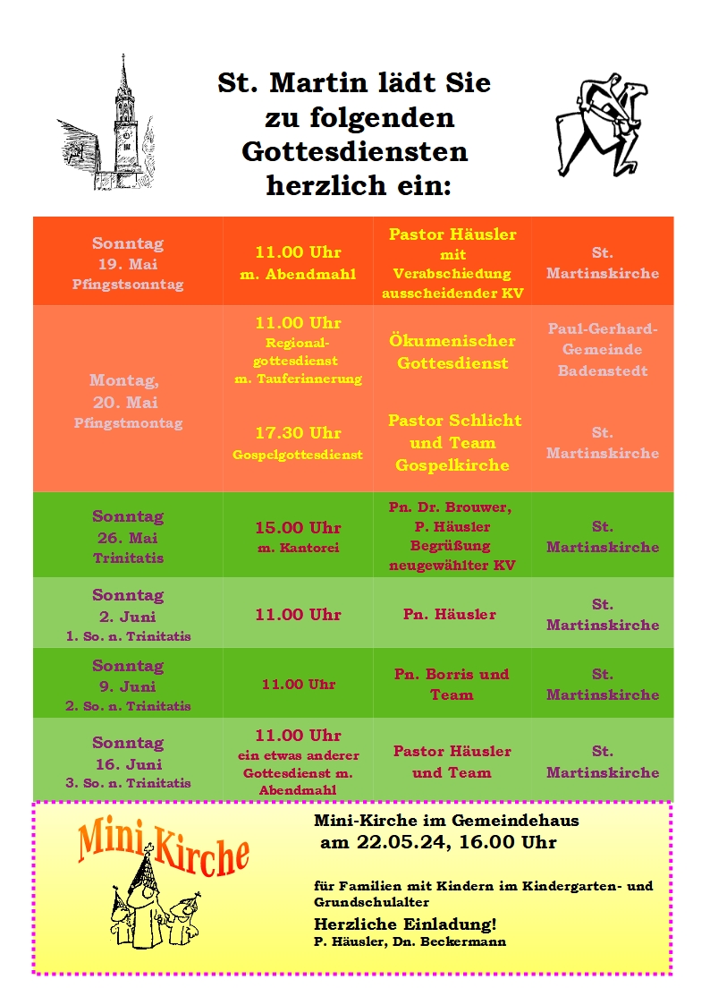 Gottesdienstplan St. Martin Dezember 2022 Januar 2023