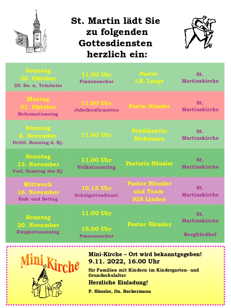 Gottesdienste in St. Martin Oktober November 2022 Aushangplan Gottesdienste St. Martin Oktober November 2022