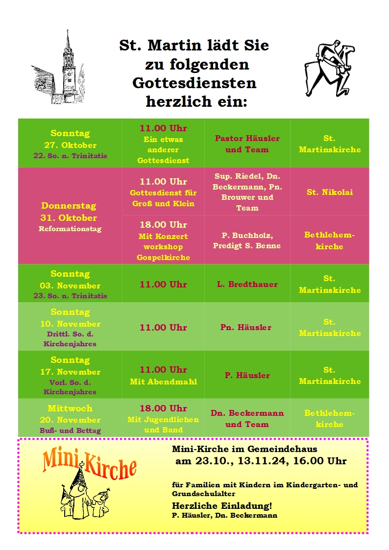 Gottesdienstplan St. Martin Oktober November 2024