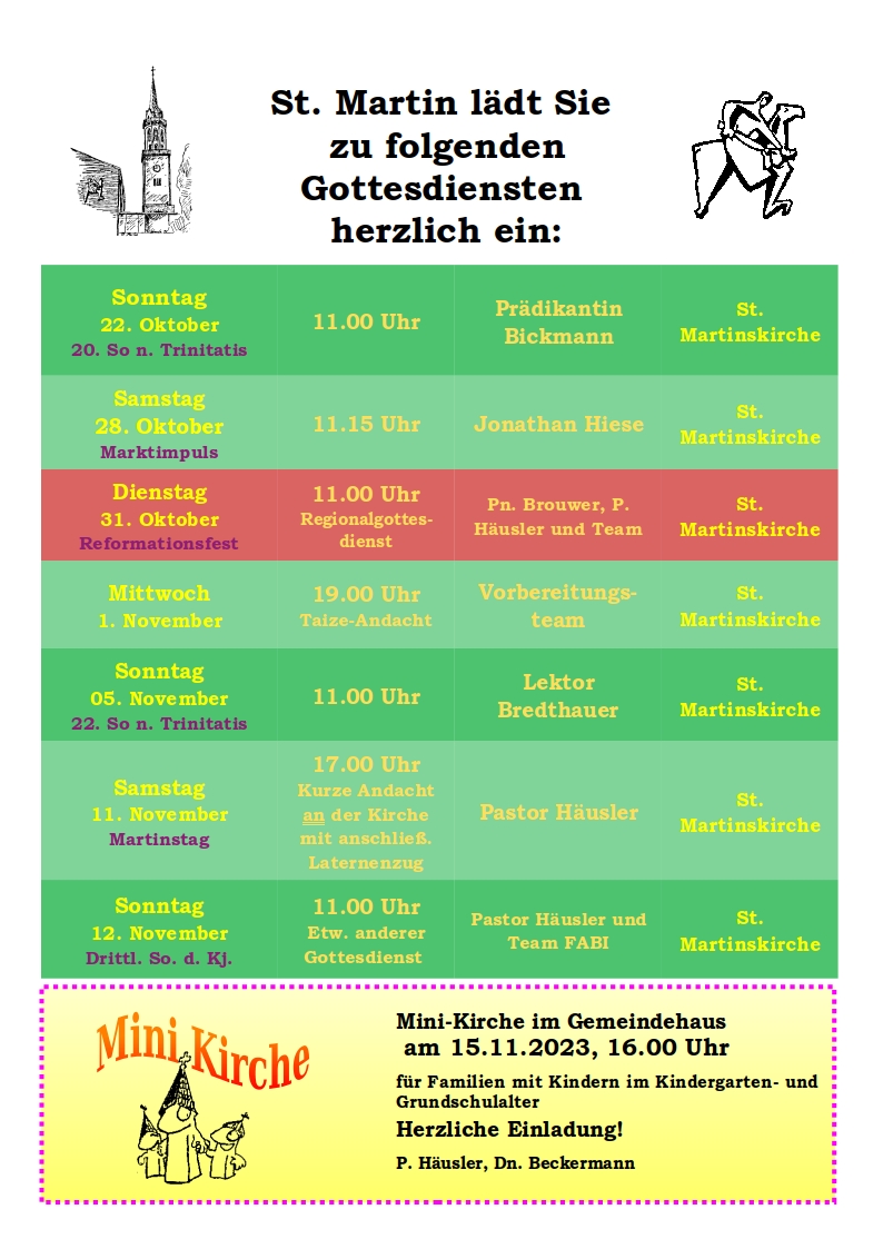 Gottesdienstplan St. Martin Dezember 2022 Januar 2023