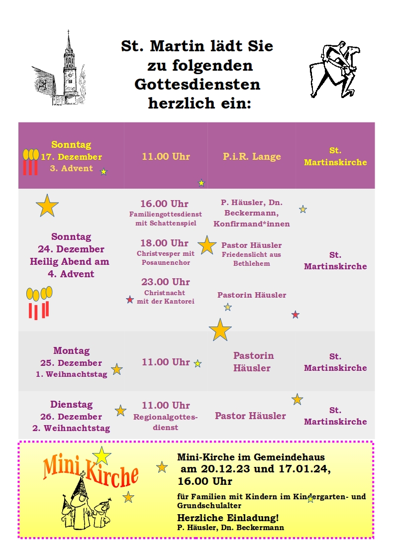 Gottesdienstplan St. Martin Weihnachten 2023